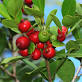 ) is a small, highly-branched tree or large shrub, growing up to 6 meters tall, with glossy green foliage and fragrant white flowers. It produces small, round, reddish-purple fruits with a sweet, strawberry-like flavor, though it can also be yellow depending on the variety. The fruit is eaten fresh or used in jams, jellies, and juices, and the plant is popular in home gardens due to its attractive appearance and relatively low maintenance.