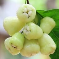 White water apples, also known as Syzygium samarangense, are a type of tropical fruit with a distinctive bell shape. They are not actually apples, but belong to the myrtle family and are native to Southeast Asia. The fruit has a thin, waxy skin that can be white, pale green, or even red. The flesh is typically white or pinkish, juicy, and mildly sweet, with a crisp, crunchy texture.